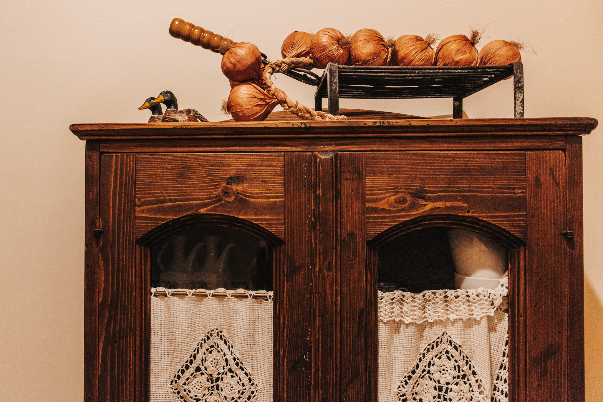 Un unico ambiente giorno suddiviso da una piccola zona salotto con un comodo divano per godere del calore del caminetto in pietra. Al di la, una piccola e graziosa cucina dotata di uno snack con sgabelli per una colazione preparata in casa o un piccolo aperitivo.